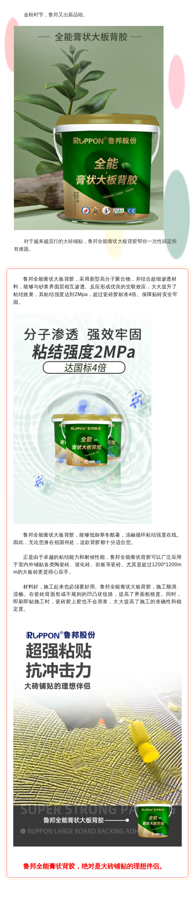 魯邦全能膏狀大板背膠上市!